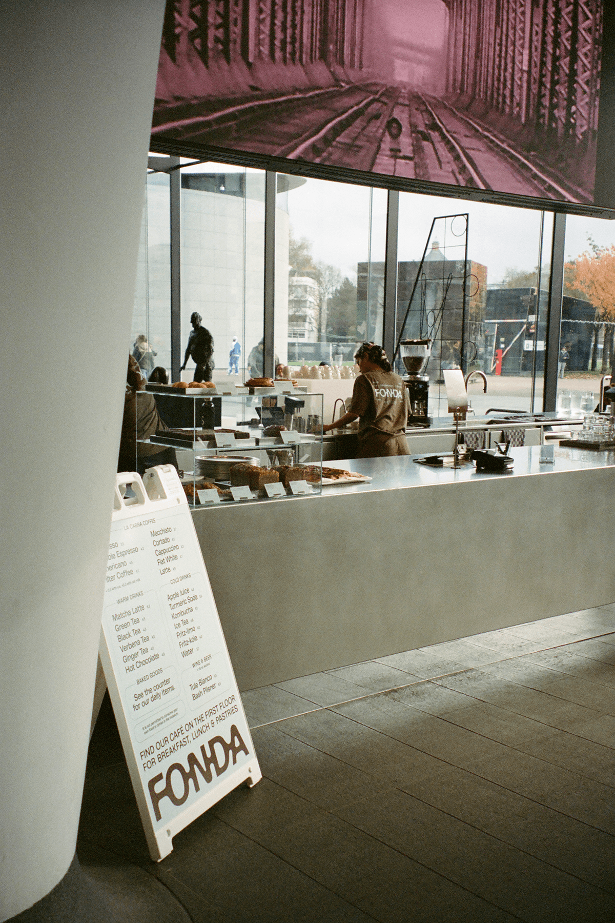 Fonda Coffee Bar is open to all, while Fonda Café requires a valid museum ticket or other approved form of entry.